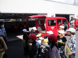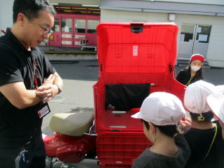 2年生の郵便局見学が行われました。絶好の校外学習日和で、学校から徒歩で鷲別駅まで向かい、そこから電車に乗って幌別駅まで向かいました。鷲別駅に入るのが初めてという子や電車に乗るのも初めてという子もいて貴重な体験となりました。幌別駅につき目の前にある登別郵便局では、3つのグループに分かれ、郵便局の仕事についてDVDを見て学習したり、郵便配達用のオートバイや車両を見学したり、郵便物の消印スタンプの押印体験や、仕分け機械を見学しました。お話を聞いてメモを取ったり、普段見ることのできない仕事の様子を見学して、しっかり学習できました。 | |||