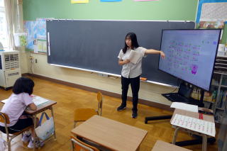 この4月に本校に赴任された初任者の先生の研究授業が行われました。授業は特別支援学級2年生の算数「100より大きい数」でした。マンツーマンでの指導で児童に寄り添いながら、ICT機器も活用して授業を進めていました。 | |||